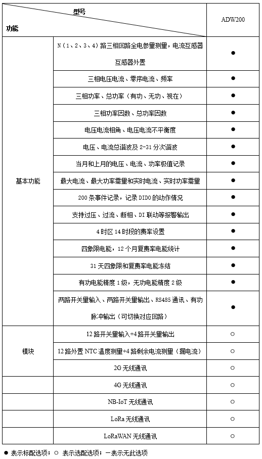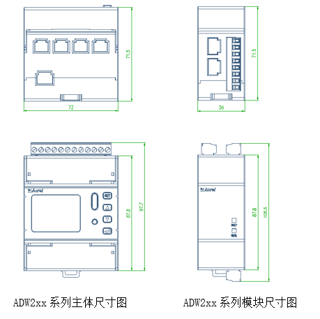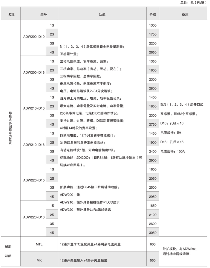 ADW2xx系列導軌式多回路電力儀表方便用戶進行用電監測、集抄和管理??伸`活安裝于配電箱內,實現對不同區域和不同負荷的分項電能計量,統計和分析。訂貨范例: