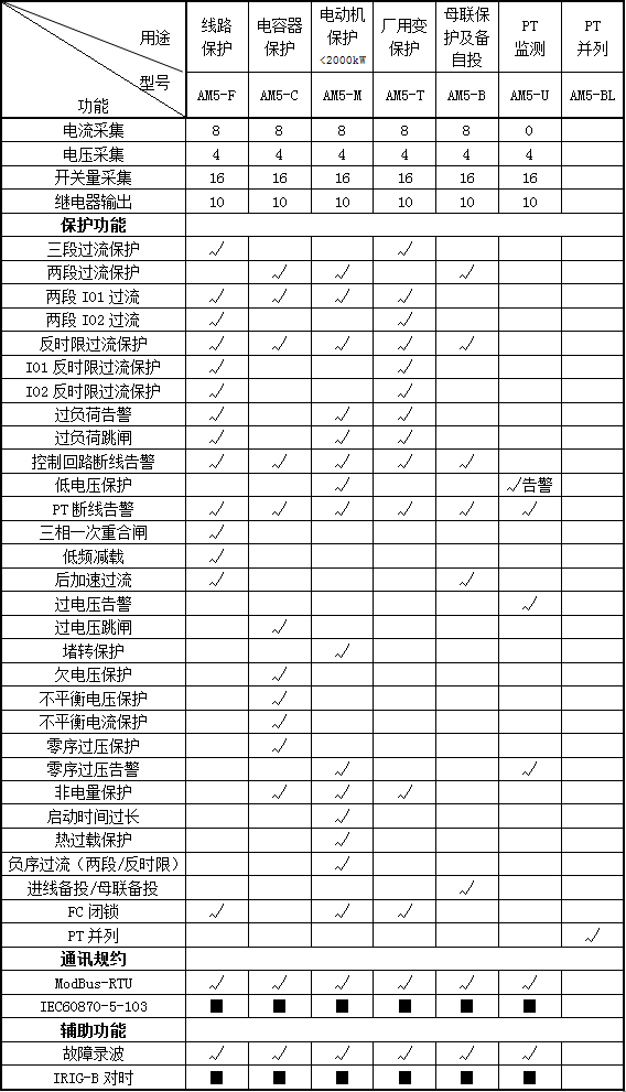 | AM5-F 線路保護測控裝置 | 進/饋線 |