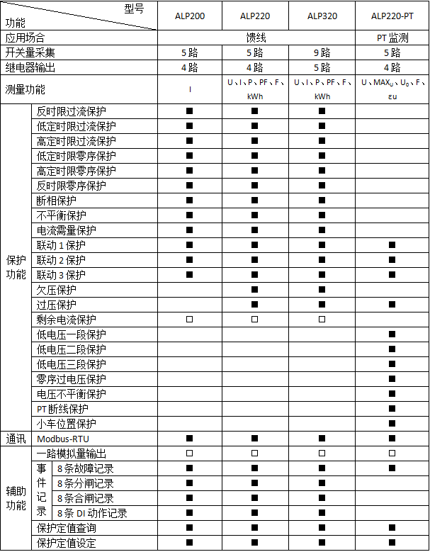 ALP系列低壓保護器集保護、測量、控制、總線通訊為一體,同時提供了遠程自動控制、現場直接控制、面板指示、信號報警、操作記錄、跳閘報警記錄及開關量記錄等功能。應用范圍: