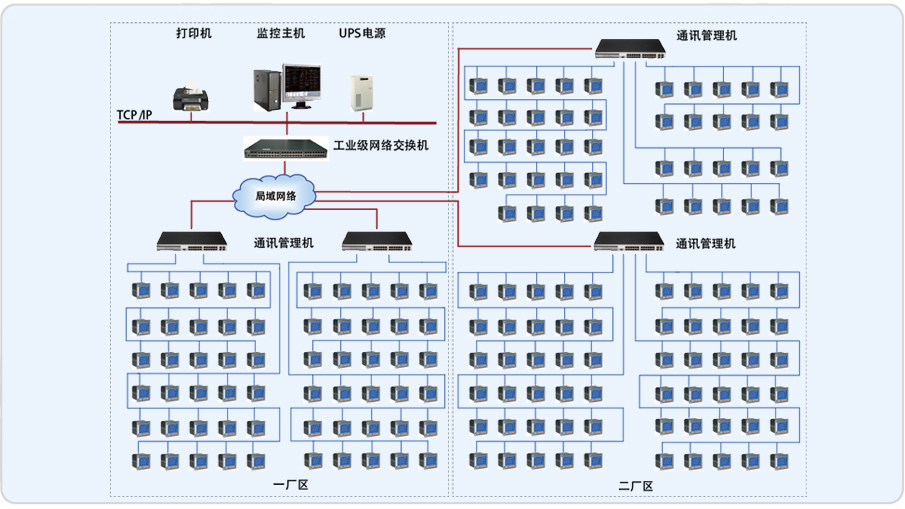 系統(tǒng)通過安裝在工廠電網(wǎng)中主要受電點(diǎn)和樞紐配電柜中的電能監(jiān)測(cè)儀表采集到配電網(wǎng)的各項(xiàng)電力參數(shù)信號(hào),再將信號(hào)轉(zhuǎn)換為數(shù)據(jù)傳輸?shù)接?jì)算機(jī)中,計(jì)算機(jī)對(duì)數(shù)據(jù)進(jìn)行存儲(chǔ)、計(jì)算和分類存儲(chǔ)到數(shù)據(jù)庫(kù)中,然后通過計(jì)算軟件將電能以報(bào)表、圖表的形式進(jìn)行展示。