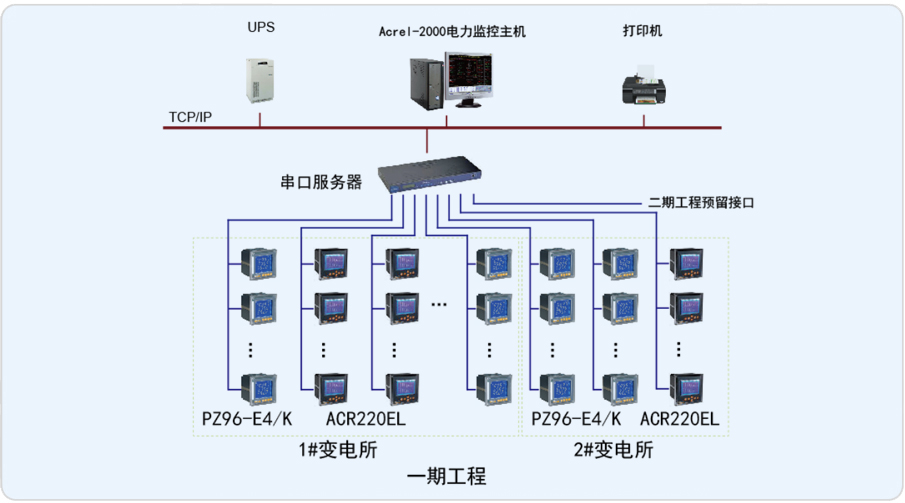 天津運載火箭產業(yè)化基地是亞洲的航天產業(yè)基地,包括焊接、鑄造、鉚接、復合材料等約30個單體項目,天津基地已具備研制大火箭需要的全部功能,進入大火箭關鍵技術研制的突破階段。二十萬平方米的一期工程完工后,從部件加工到總裝、試驗,各項有關研制的功能都將具備。二期工程建設規(guī)模約三十萬平方米,將根據國家航天產業(yè)發(fā)展需求陸續(xù)投入建設。本系統(tǒng)對一期工程中1#、2#變電所中設備進行監(jiān)控、監(jiān)測,計量裝置選用安科瑞電力儀表ACR220EL、PZ96-E4/K用于對分布在廠區(qū)1#配電房及2#配電房低壓回路進行監(jiān)控。