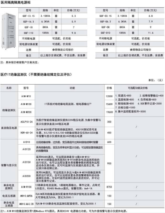 適用于醫院的手術室、ICU(CCU)監護病房等重要場所。訂貨范例: